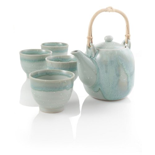 By combining antique teapot shapes and traditional kilns with modern glazing techniques artisans add life to ancient traditions This unique teapot is hand-glazed which causes variation and makes every teapot an original unique artistic piece 5-piece stoneware tea set antique modern cross-over