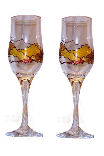 Ring in the New Year with this sparkling set of 2 7 ounce champagne flutes Hand painted with yellow orange and deep gold colors Each flute is one of a kind and signed by the artisan Usually ships in 5 days from receipt of order Made in America Individually hand painted signed by artisan Se