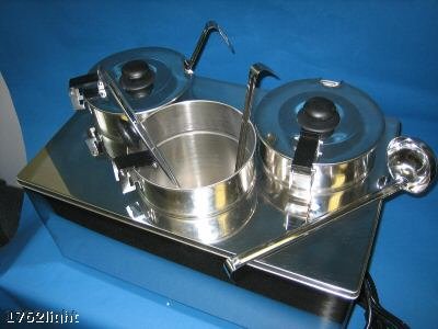Food Warmer Countertop Electric includes full size adapter plate for 3 ss inserts with lids ladles product cards wholders 5 qt capacity wet operation 188 stainless steel construction 3-12 qt water capacity EZ-Drain 65 cord w3 prong plu MIRROR POLISHED STAINLESS STEEL - A TRUE WORK OF ART